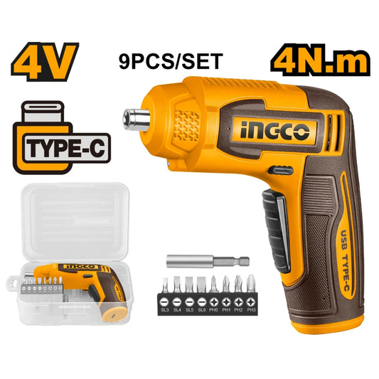 ATORNILLADOR INALÁMBRICO INGCO 4V + 8 PIEZAS USB-C